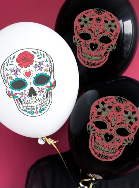 6 Catrina balloons in black - Día de los muertos