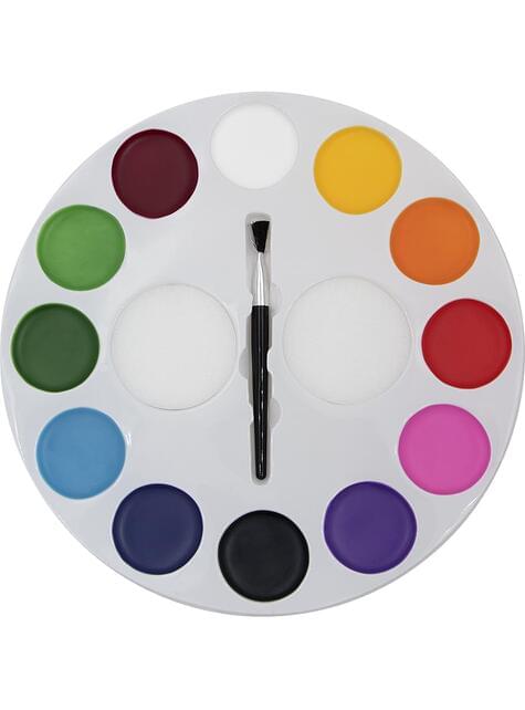 Includes: Palette of 12 colors of 9.10 g with brush and 2 sponges